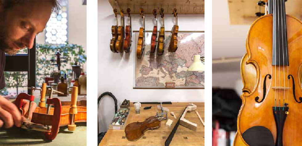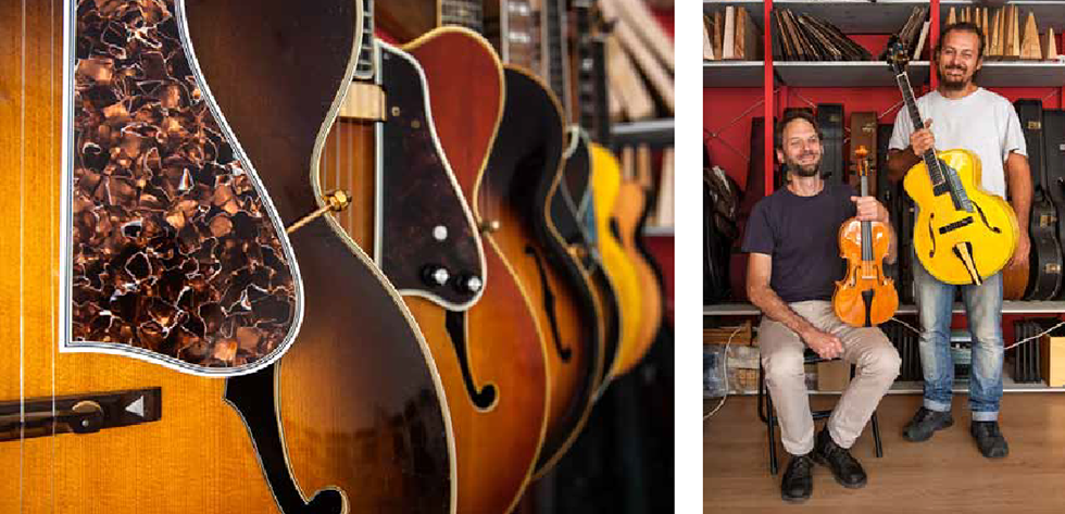 Каждого, кто спрашивает у Эрика Перротта и Стефана Неурейтера, как переводится Ran de Gal – название их мастер- ской, они одаривают улыбкой, отвечая: «Никак не переводится, но звучит неплохо, правда?» Если бы они занимались каким-то другим ремеслом, то подобный ответ мог бы показаться абсурдным. Но не в их случае. Все потому, что в хорошем звучании заключается весь смысл их профессии: Эрик делает смычки и джазовые гитары Archtop, а Стефан – скрипичных дел мастер, реставрирующий и изготавливающий скрипки, альты и виолончели. Для обоих работа с му- зыкальными инструментами – призвание, дело, которым они грезили с детства. У обоих были прекрасные наставники, научившие их «слышать» дерево и распознавать среди необработанных стволов красной трентинской ели тот, который будет способен «запеть», как только станет музыкальным инструментом. Эрик и Стефан скрупулезно работают над каж- дой деталью струнных инструментов и смычков, которые Эрик изготавливает из редкого фернамбукового дерева или из углеродного волокна и которым придает особый изгиб. Техническим совершенством он не ограничивается – смычки он декорирует деталями из перламутра, эбенового дерева, золота и серебра, а гитары – инкрустациями и рисунками, кото- рые иногда посвящает известным джазистам или городам, оставившим след в истории музыки.